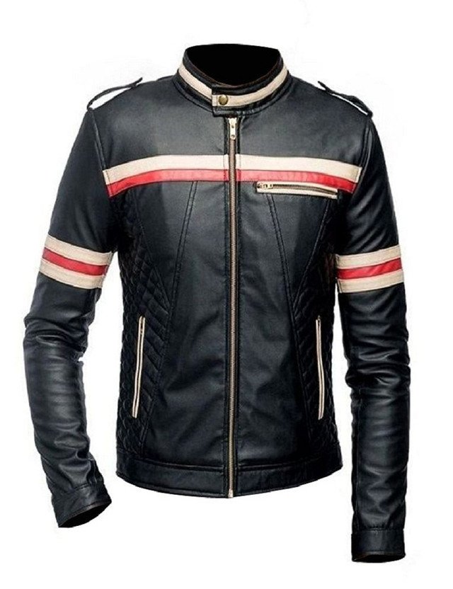 $225.00 – $265.00Price range: $225.00 through $265.00Cafe Racer Biker Style Black Jacket With Beige And Red Stripe Jacket