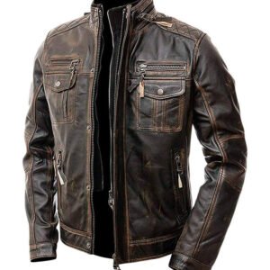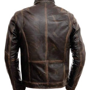 Distressed Cafe Racer Biker Jacket In Brown Leather