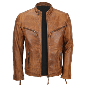 Sword Brown Genuine Leather Cafe Racer Motorcycle Jacket