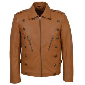 Men’s Leather Camel Jacket In Cafe Racer Style