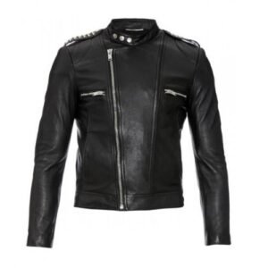 Men’s Biker Black Leather Asymmetrical Zip Jacket