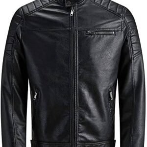 Men’s Biker Quilted Black Jacket In Genuine Leather