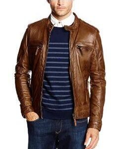 Men’s Cafe Racer Reddish Brown Jacket In Real Leather