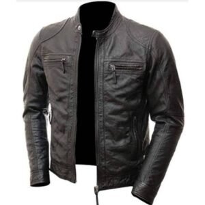 Men’s Cafe Racer Black Shiny Leather Jacket