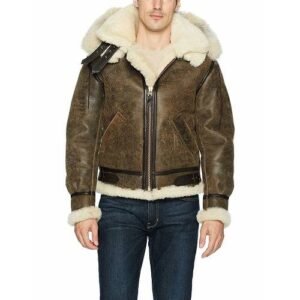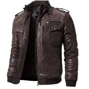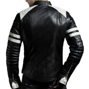 Men’s Leather Biker Jacket White Stripes On Sleeves