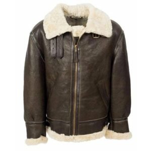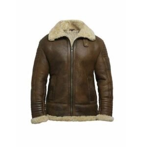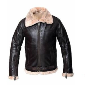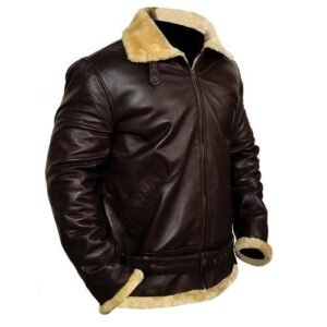 Men’s Brown B3 Flight Leather Jacket With PU Fur Shearling Lining