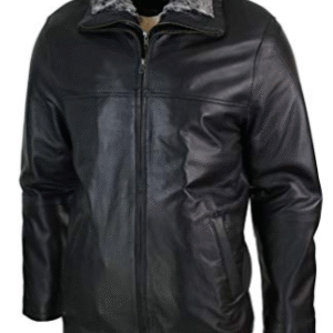 Men’s Fur Lined Double Zip Leather Jacket In Black