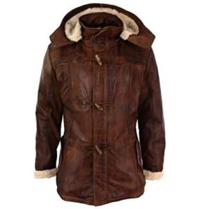 Men’s Brown Leather Aviator Jacket With Fur Collar