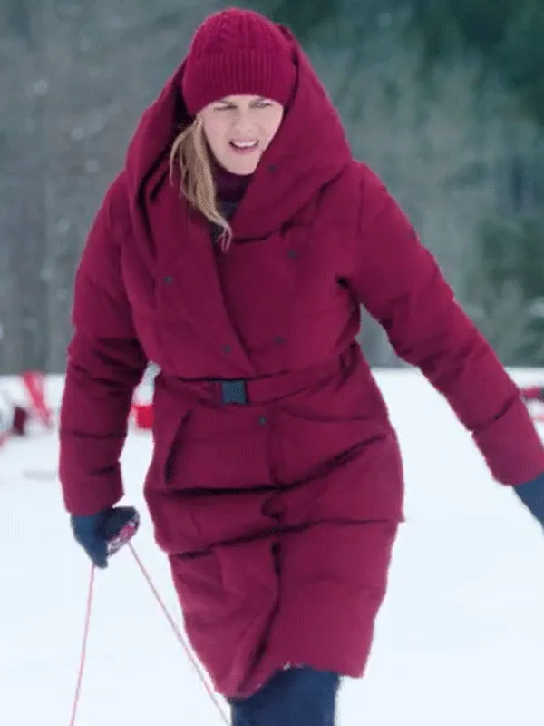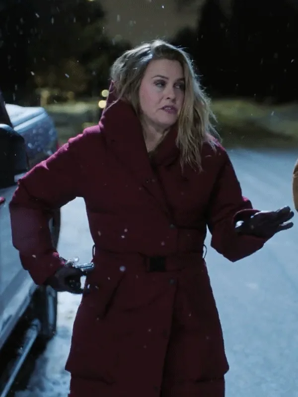 Alicia Silverstone Ex-Mas Burgundy Puffer Coat