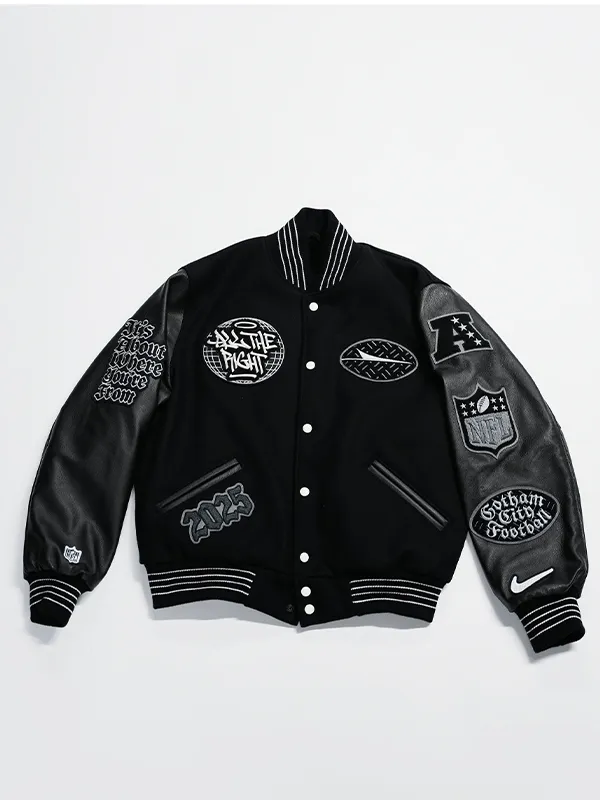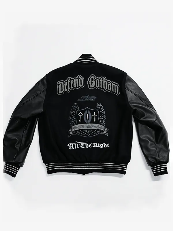 Re-Engineered | All The Right x New York Jets Gotham City Football Unisex Rivalries Black Wool Varsity Jacket