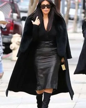 American Actress Kim Kardashian Black Fur Coat