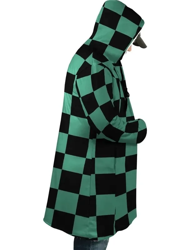 Re-Engineered |Demon Slayer: Kimetsu no Yaiba Tanjiro Kamado Green and Black Hooded Trench Coat