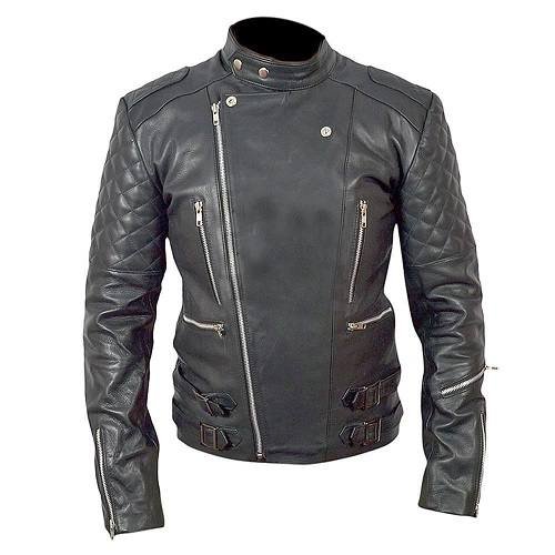 In pure black, this motorcycle leather jacket is a chic and classy addition to your wardrobe. The asymmetrical front zipper closure adds an edgy touch, while the 2x waist pockets and 2x chest side slash pockets provide both style and functionality. The quilted style on the sleeves enhances the overall design, creating a jacket that exudes grace and elegance.