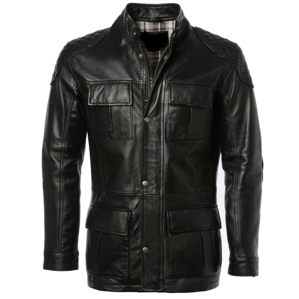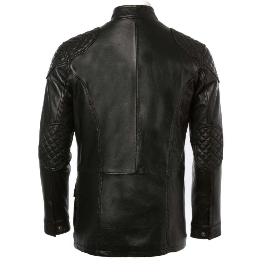 Revitalize your wardrobe with our Black Leather Men’s Cafe Racer Jacket – a fusion of classic design and contemporary flair. The round collar, complemented by quilted shoulders and sleeves from the back, embodies the iconic cafe racer style, bringing an edge to your fashion repertoire.