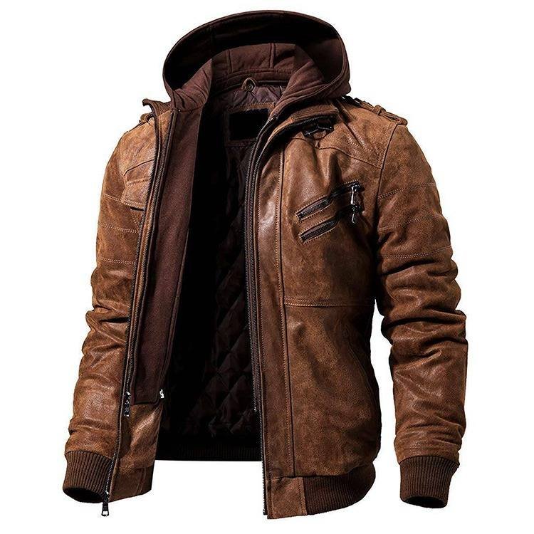 Revitalize your wardrobe with our Brown Distressed Leather Jacket with Hood – now on SALE. Embrace the rugged charm and timeless appeal of distressed brown leather, a hue that effortlessly complements your adventurous spirit.