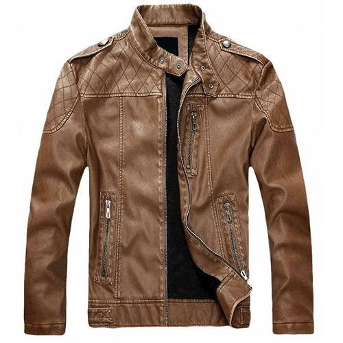 Revitalize your wardrobe with our Cafe Racer Retro Jacket for Men in Brown Leather, a timeless piece that seamlessly combines classic design with contemporary flair. The round collar with a snap-tab and epaulette tabs exudes vintage charm, capturing the essence of retro style. Quilted pads on the shoulders, sleeves, and back add a rugged yet refined touch, making a bold statement.