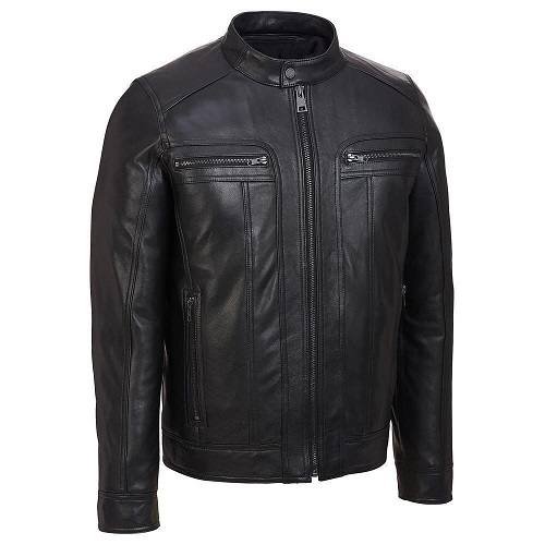 Cafe Racer Stand Up Collar Jacket Black Leather
