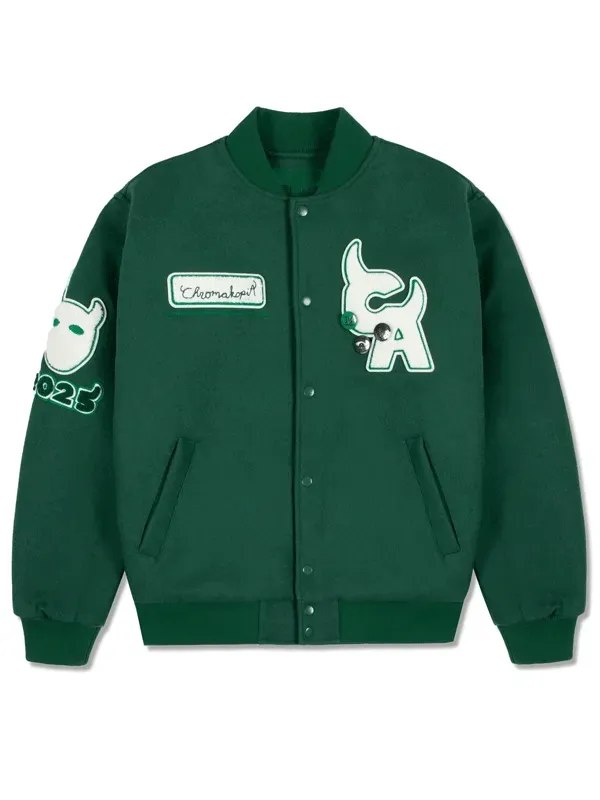 Chromakopia Tour 2025 Green Black Wool Varsity Jacket