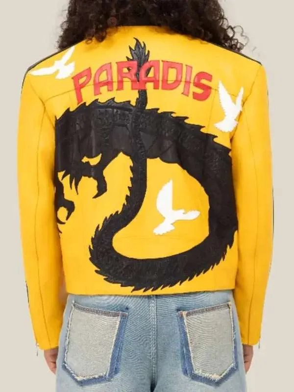 Dua Lipa Buenos Aires Dragon Yellow Leather Jacket