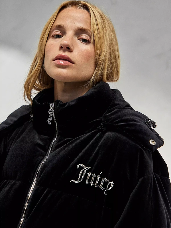 Re-Engineered | Juicy Couture Black Puffer Jacket Quilted Winter Outerwear.