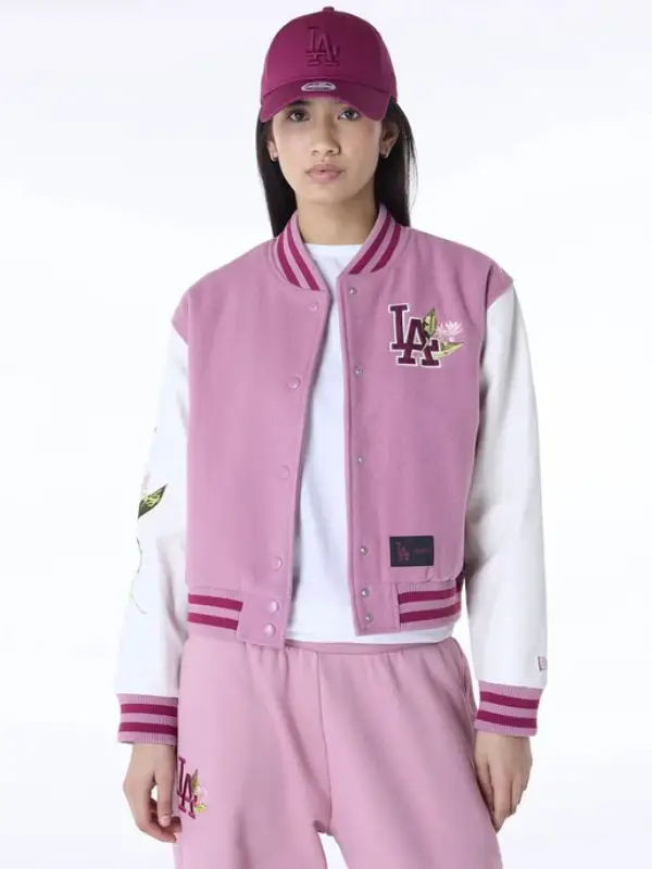 LA Dodgers Floral Pink Varsity Jacket Women
