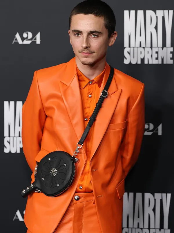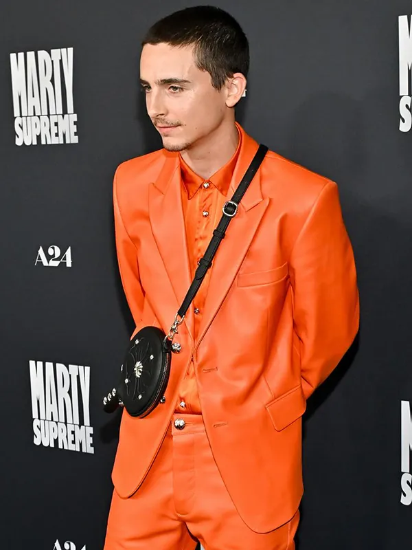 Marty Supreme Orange Leather Blazer 2025