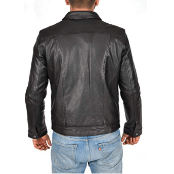 Men’s Black Leather Biker Cafe Racer Jacket