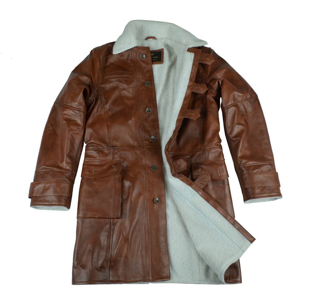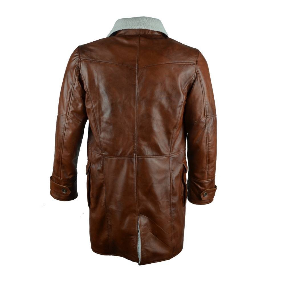 Embodying both style and practicality, the back middle vent ensures ease of movement without compromising on the coat’s elegant silhouette. Conquer the cold in style with our Men’s Brown Leather Shearling Long Coat – where fashion meets function seamlessly.