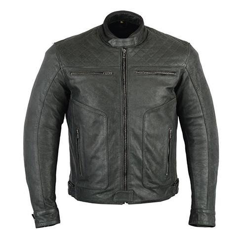 Men’s Cafe Racer Black Leather Quilted Bomber Jacket