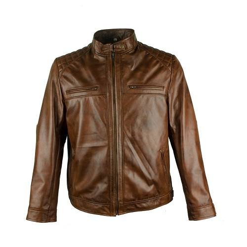 Men’s Light Brown Leather Jacket In Cafe Racer