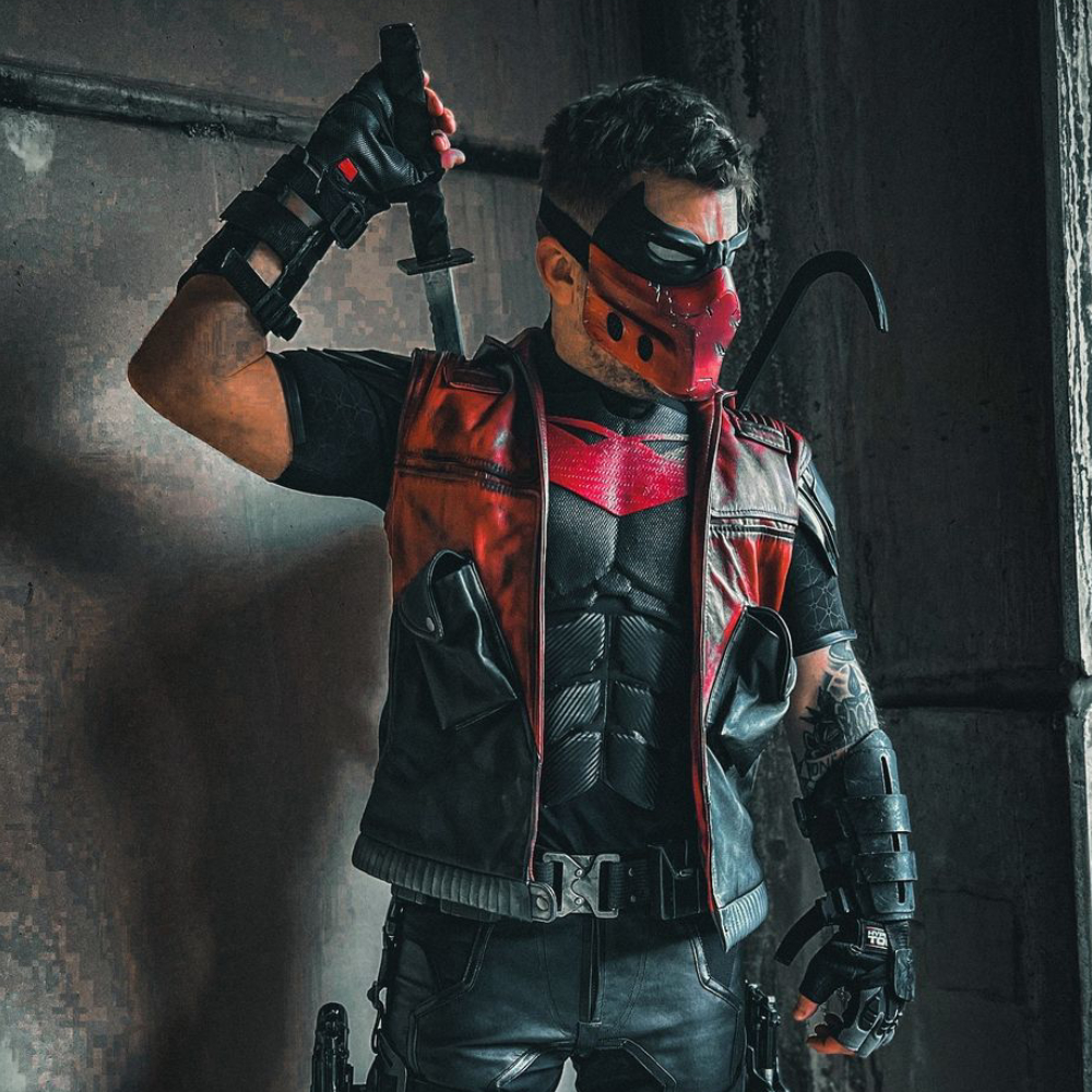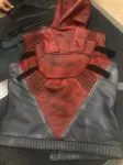 Re-engineered | Red Hood Leather Vest – Sleeveless hooded leather vest with soft lining and pockets, crafted for bold, fearless style.