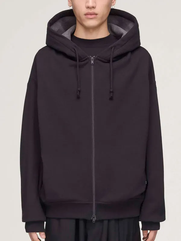 - Stand-up collar structure integrated with hooded design for layered look