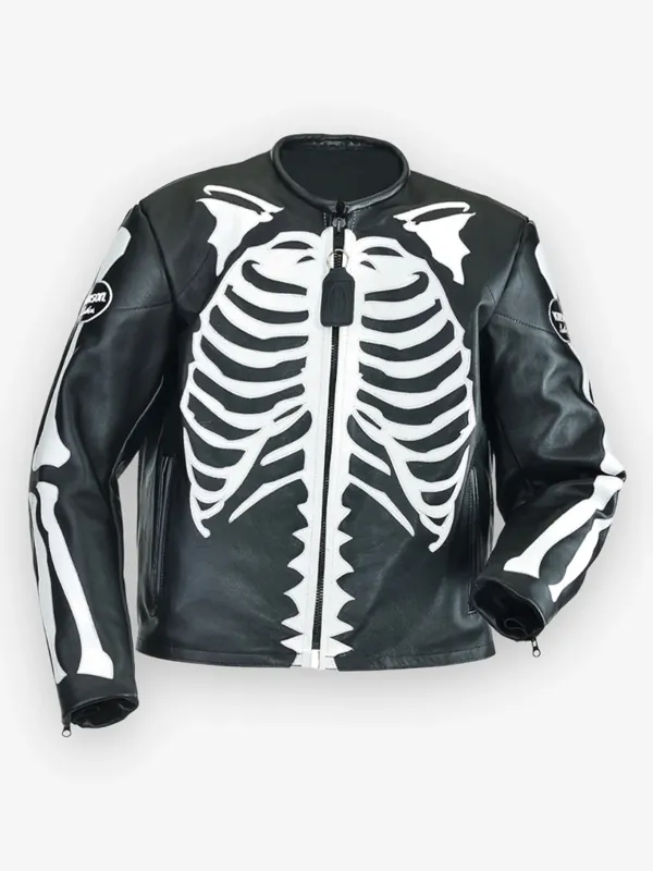 Re-Engineered |MTV Video Music Awards Lenny Tavárez Unisex Black Skeleton Leather Jacket