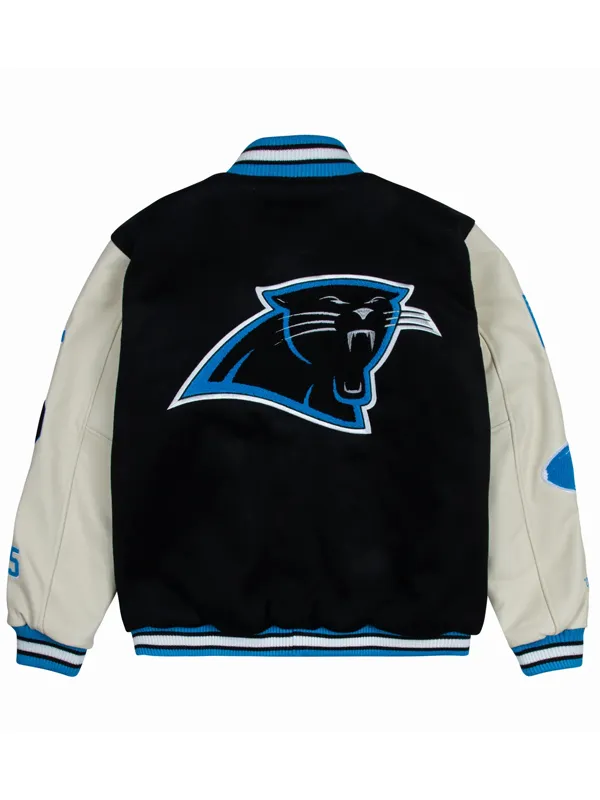 Re-Engineered |National Football League Carolina Panthers Unisex Black and White Wool Varsity Jacket