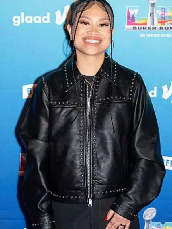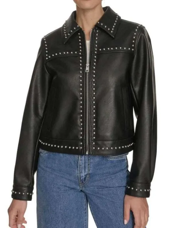 NFL Ruby Ibarra Studded Oversized Black Leather Jacket