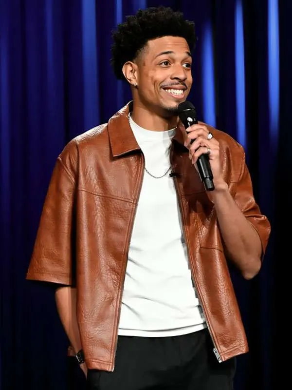 Re-Engineered The Tonight Show Starring Jimmy Fallon S13 Brown Leather Jacket Ontonio Kareem TV Series