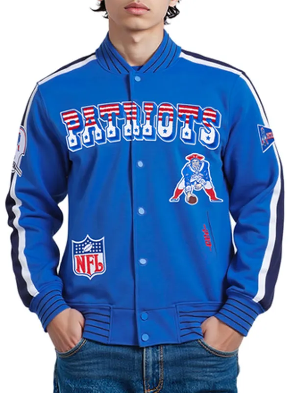 Re-Engineered New England Patriots Unisex Blue & Cream Varsity Jacket NFL 2026 Super Bowl 60