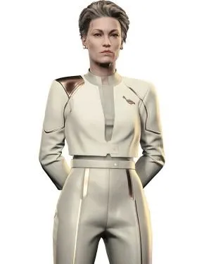 Re-engineered | Cyberpunk 2077 Phantom Liberty Myers White Cosplay Costume Jacket – Sleek white jacket inspired by Myers from Phantom Liberty, perfect for cosplay and bold, futuristic Cyberpunk style.