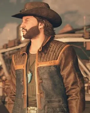 Re-engineered | Starfield Sam Coe Brown Leather Jacket – A rugged brown leather jacket inspired by Sam Coe from Starfield, perfect for fans and stylish, space-explorer themed fashion