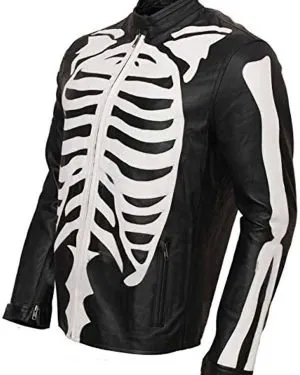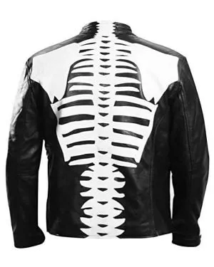 Re-engineered | Halloween Party Skeleton Bones Black Leather Jacket – Bold, Edgy Statement Jacket for a Standout Spooky Look