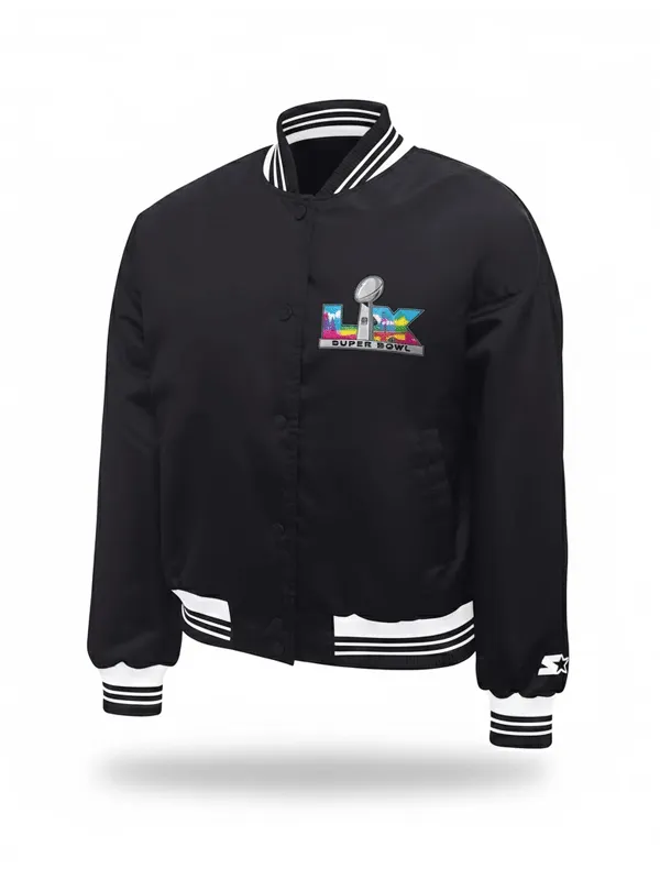 Super Bowl LX 2026 Starter Black Cropped Varsity Jacket