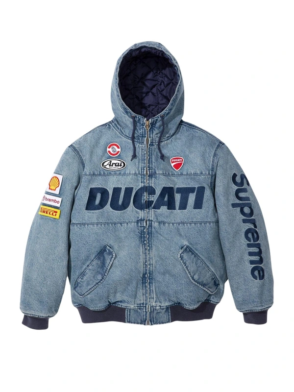 Re-engineered | Supreme X Ducati Denim Hooded Work Racing Jacket | Red | Blue | Black