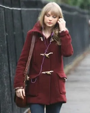 Taylor Swift Street Style Burgundy Wool Coat