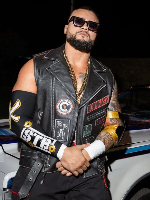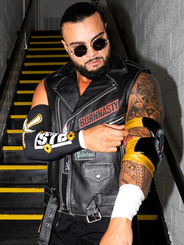Re-Engineered |Total Nonstop Action Wrestling 2025 TNA iMPACT! Mike Santana Black Leather Biker Vest