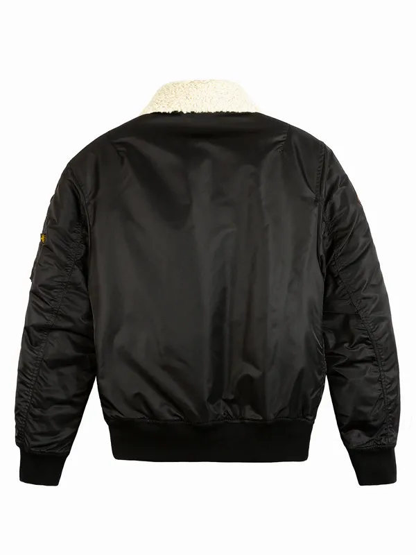 Black Bomber Fur Collar Shearling Leather Jacket