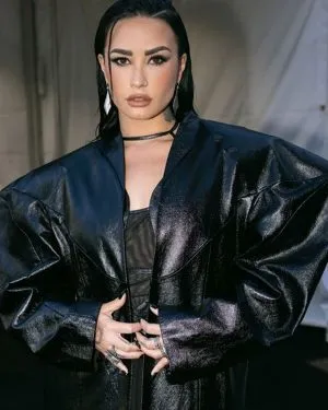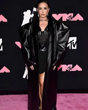 VMAs 2023 Demi Lovato Black Leather Coat