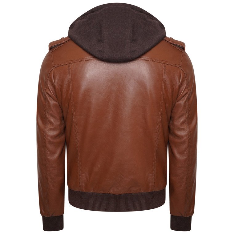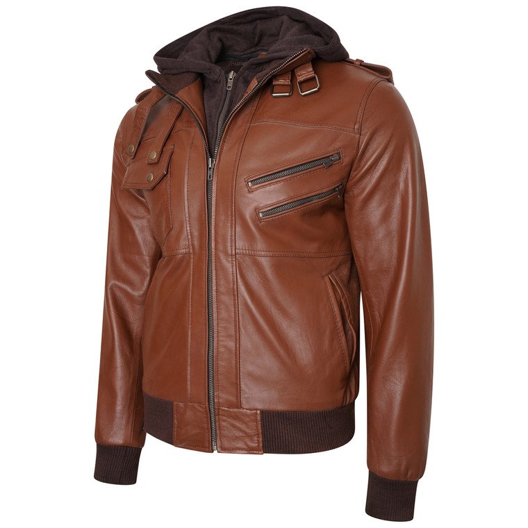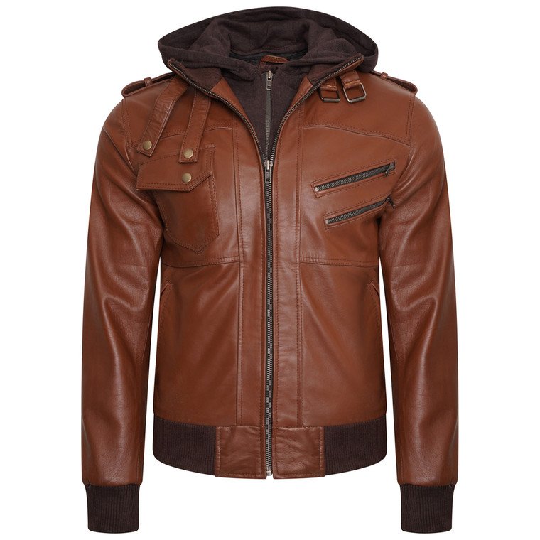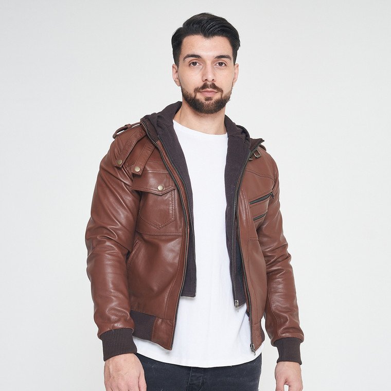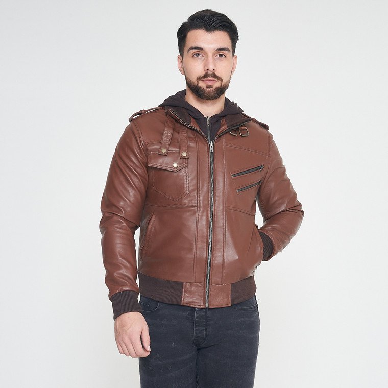 Crafted for the modern biker, this jacket is a dream come true. The remarkable leather body is adorned with an array of pockets, seamlessly blending functionality with style. A contrasting soft brown hood adds a touch of individuality, perfectly complementing your distinctive biker persona.