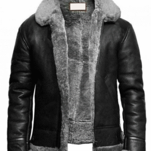 Aviator Black RAF B3 Shearling Grey Fur Leather Jacket